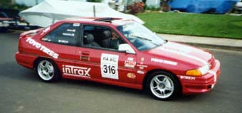 This guy has so many "sponsors" he looks like he belongs on the Winston Cup circuit. He's very proud of his Toyo Tires and his Intrax Springs. Since he is a true racer, he also has his racing stripes, but to be original, they are offset.